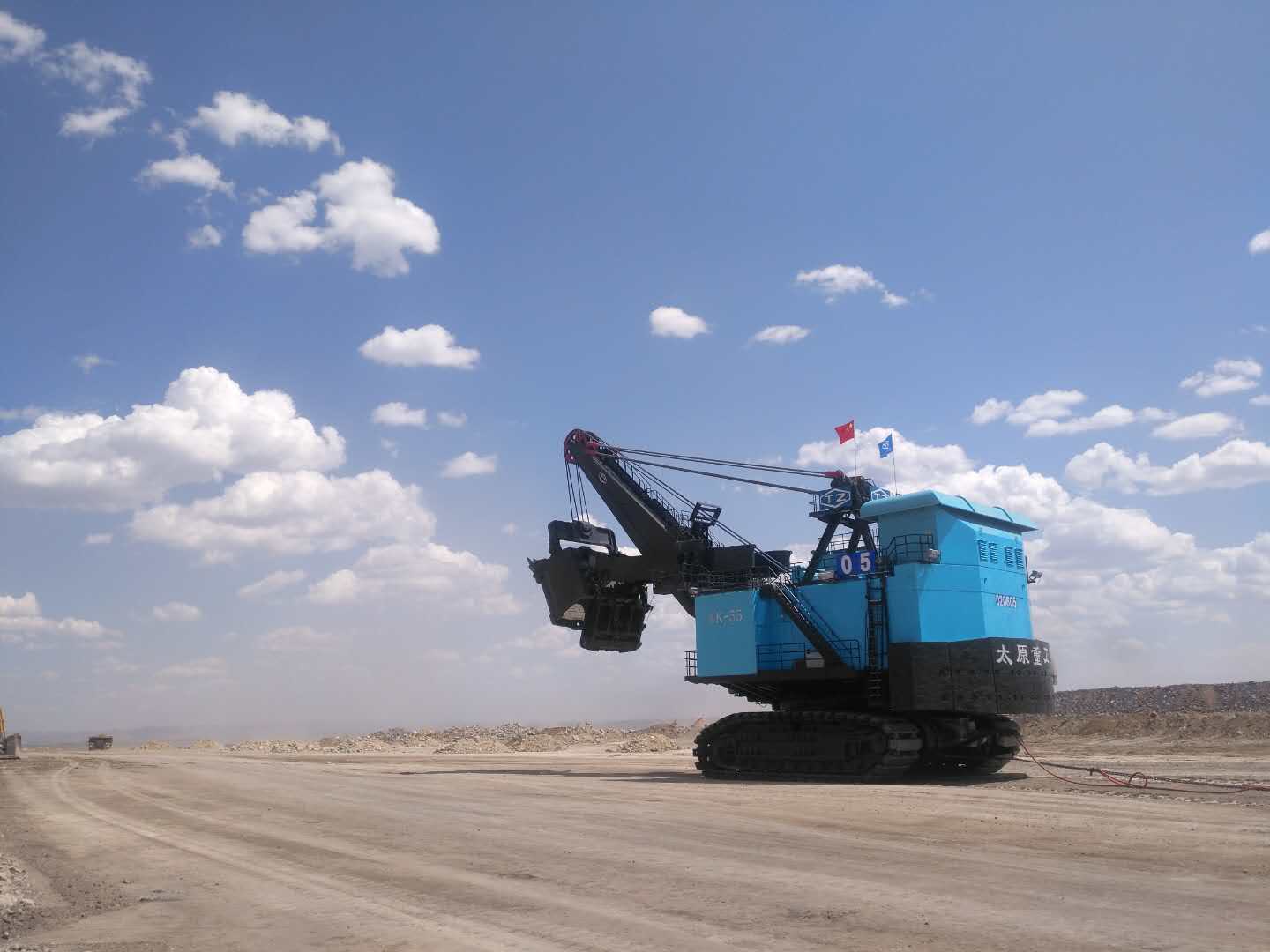 61 天,一个庞然大物高高耸立在蓝天白云下,鲜红的五星红旗和湛蓝的太重旗帜,交相辉映,见证着太重人的智慧与毅力!与时间赛跑,与困难斗争,太重矿山人打了一场漂亮的履约仗、攻坚仗,用实际行动在项目安装中展现“太重速度”!受到了用户的高度称赞和信任。