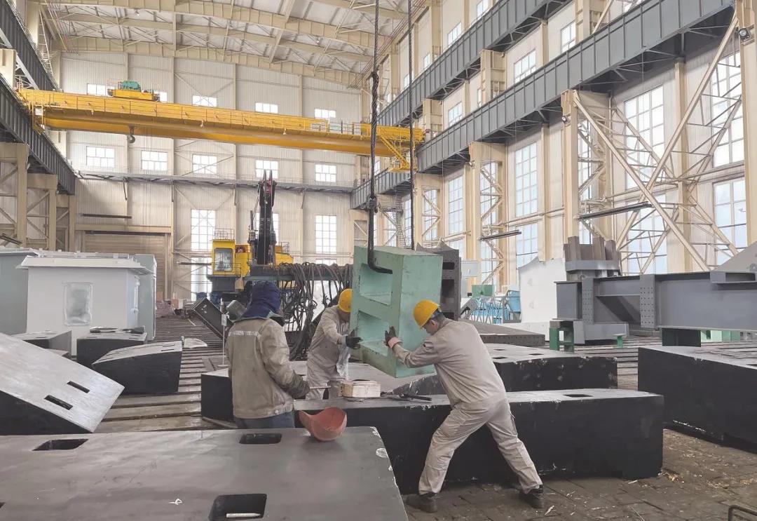 生产保障部门为配合生产,安排专人配合机床、行车等机器设备的维修维护、电焊作业的接线、电气设备的测试维护等。在安装现场、机床旁、行车上,随处可以看到他们背着工具包来回穿梭的身影。